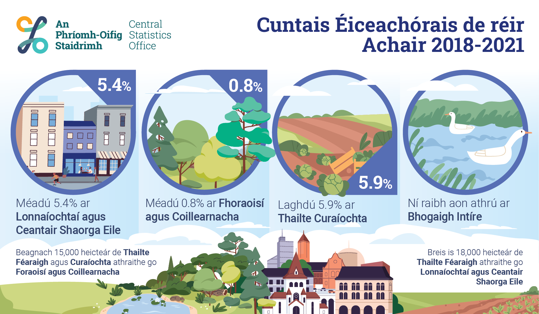 Méadú 5.4% ar Lonnaíochtaí agus Ceantair Shaorga Eile