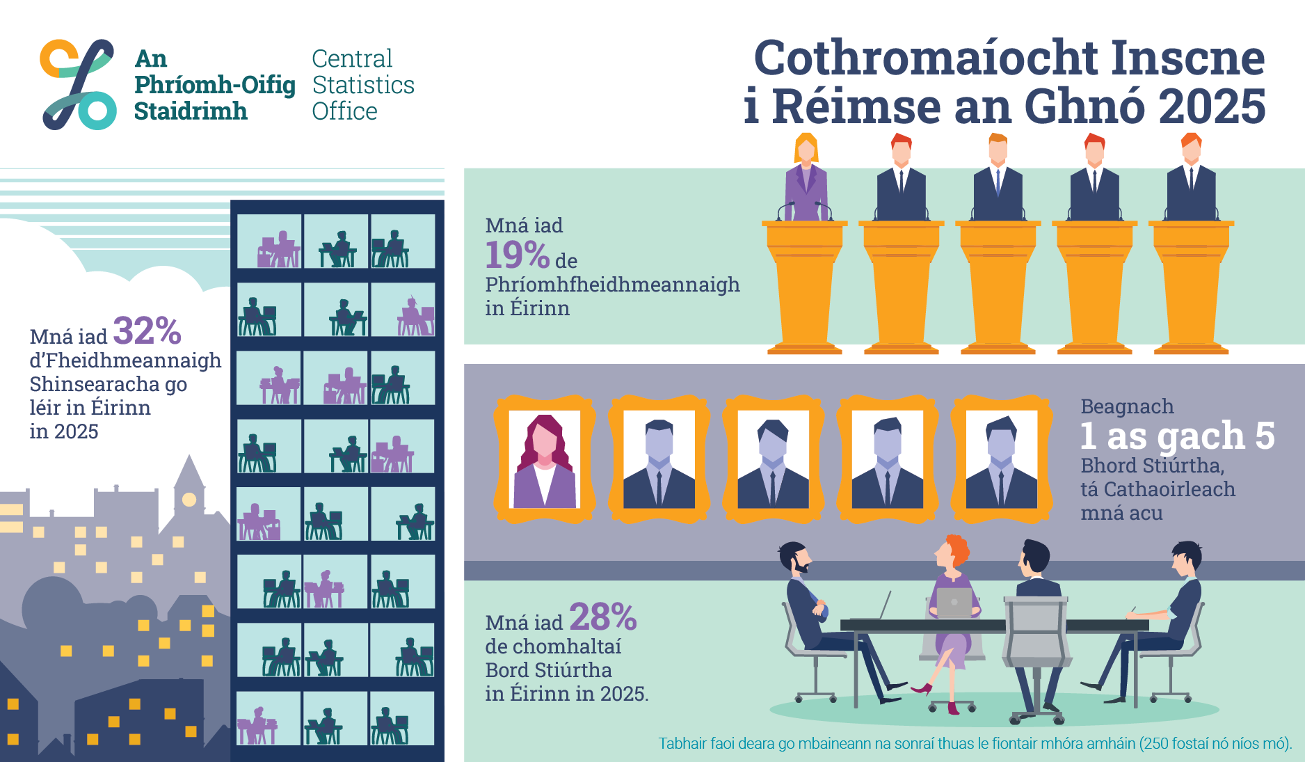 - Mná iad 32% d’Fheidhmeannaigh Shinsearacha go léir in Éirinn in 2025