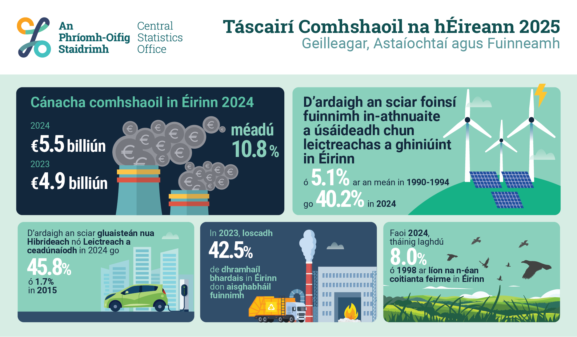 - Cánacha comhshaoil in Éirinn ionann le €5.5 billiún in 2024, méadú 10.8% ar €4.9 in 2023