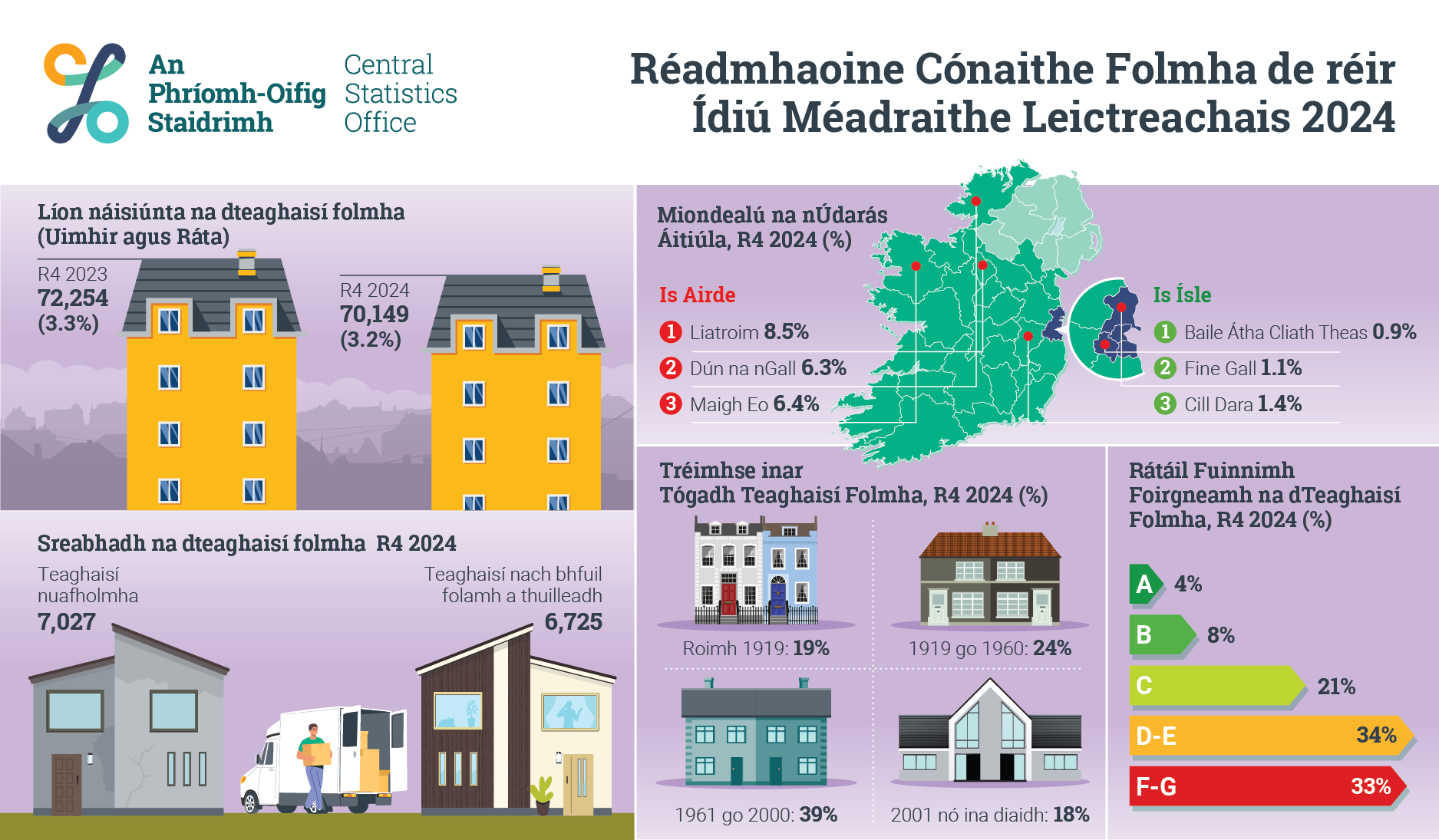 Tréimhse inar Tógadh Teaghaisí Folmha, R4 2024 (%)