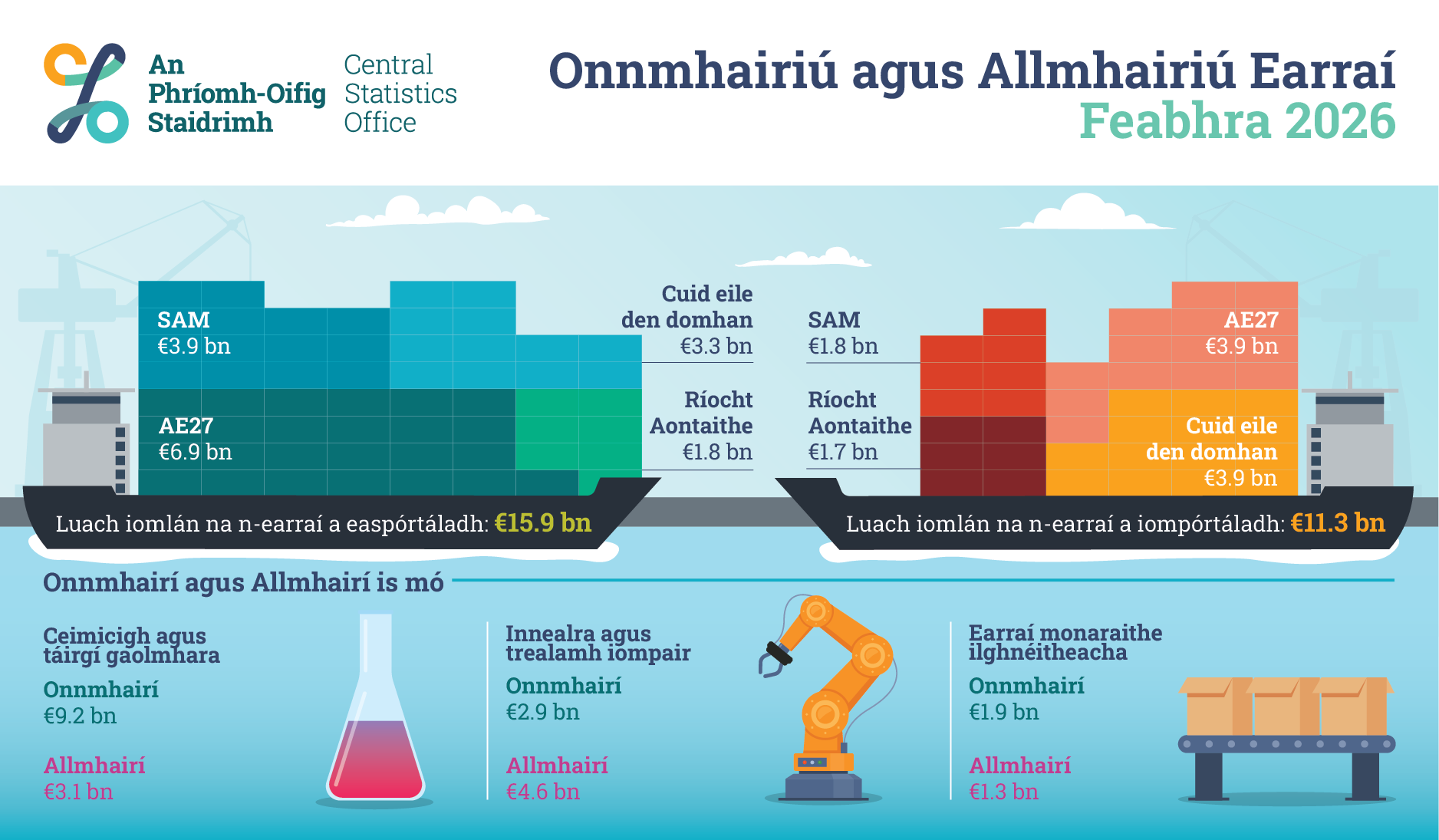 Onnmhairiú agus Allmhairiú Earraí, Feabhra 2026
