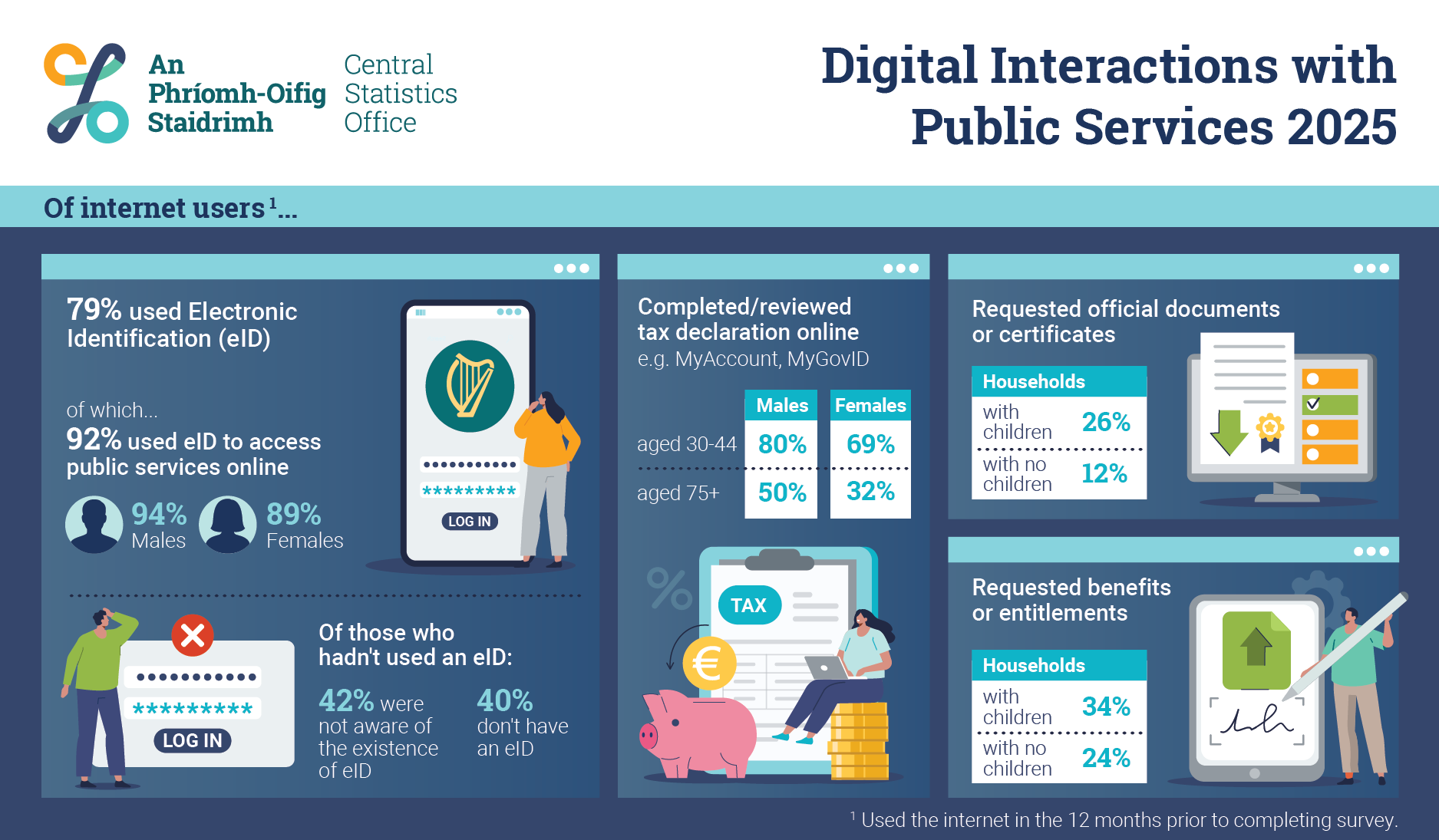 92% used eID to access public services online; 94% Males, 89% Females