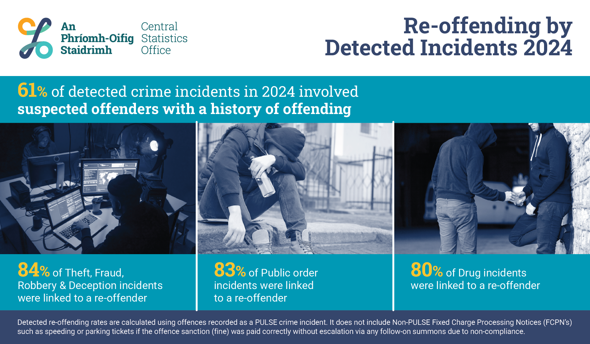 - 61% of detected crime incidents in 2024 involved suspected offenders with a history of offending